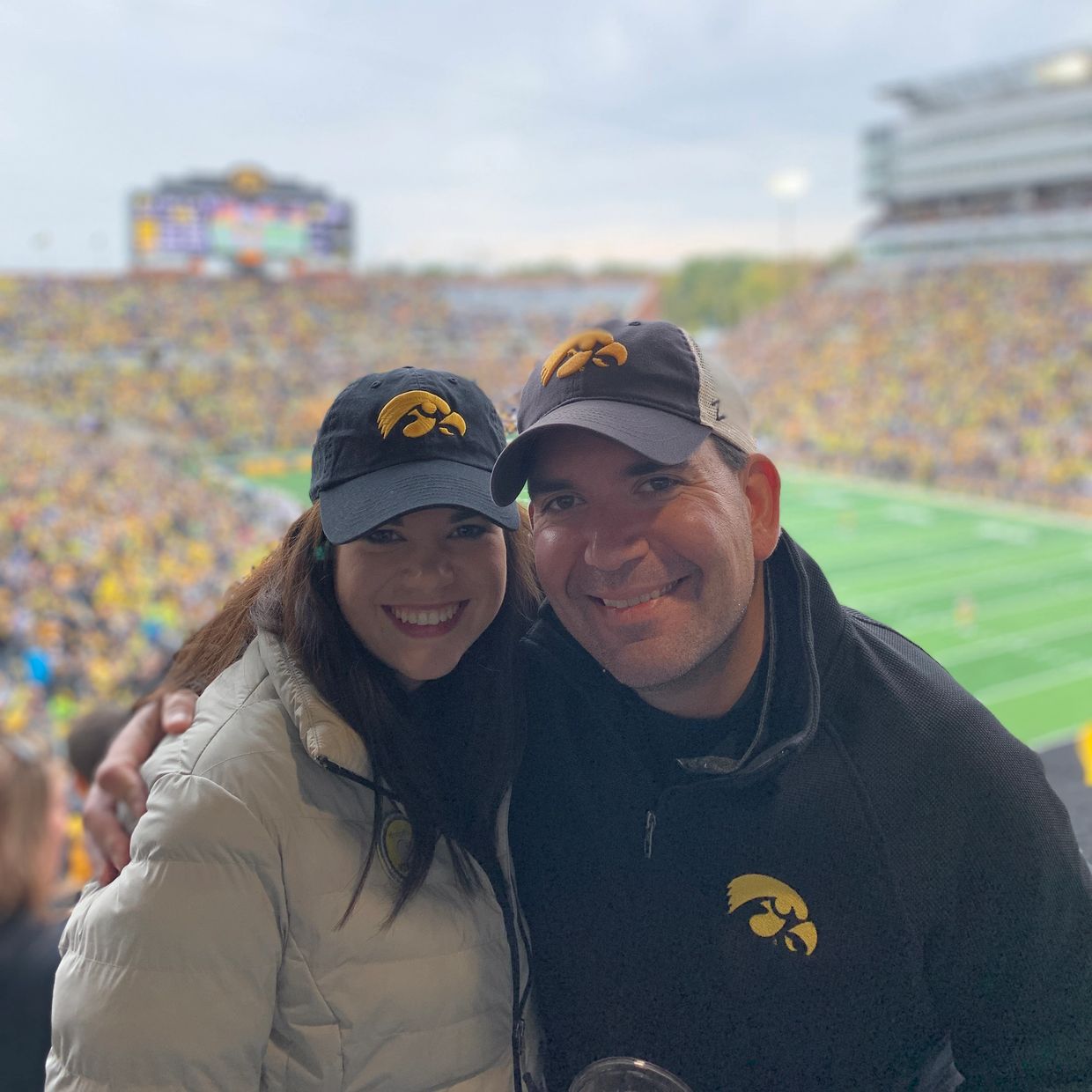 Pictured here at Kinnick Stadium in Iowa City, IA, with my wife, Alyssa.